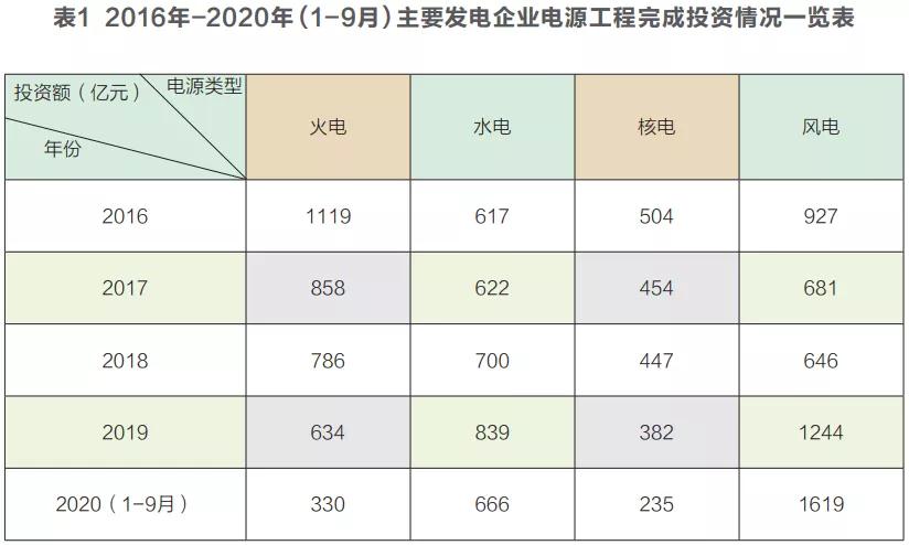 纵观“十三五”期间的电力投资与建设历程,虽然电网投资呈现逐年下降趋势,但每年电网投资一直远高于电源投资。电源投资在2020年前九个月之所以出现快速增长情况,是由于受到发改价格〔2019〕882号文的影响,要求2018年前核准的陆上风电项目必须赶在2020年底前完成并网,否则国家不再补贴,同时水电和光伏发电项目投资也比上年同期有较大幅度增长。