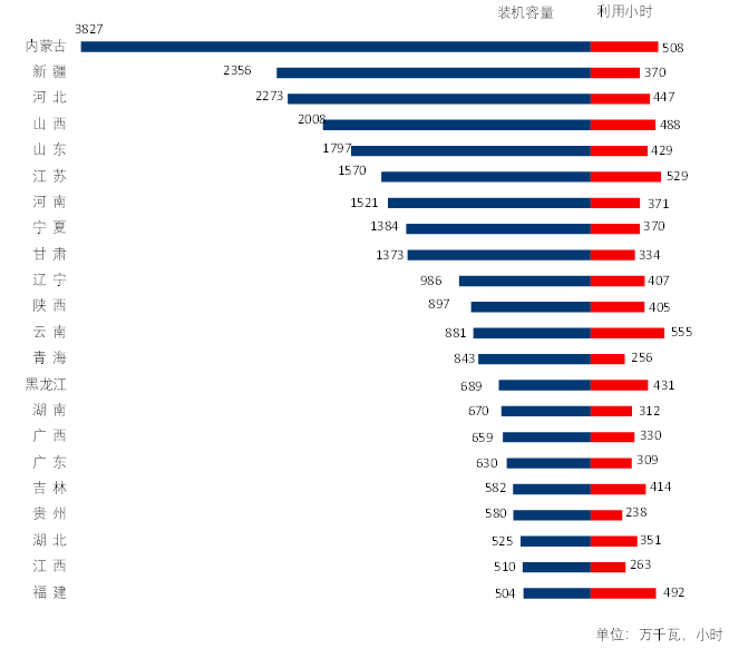 3 1-2月份风电装机较多省份风电装机容量和设备利用小时