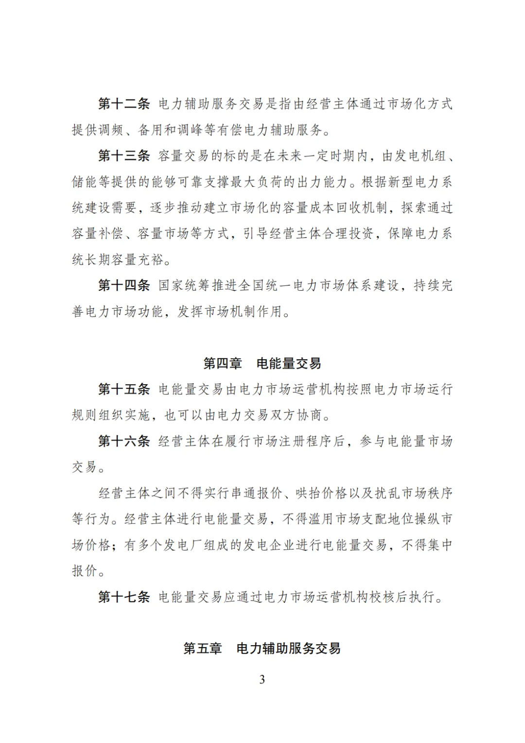 四是完善电能量、辅助服务交易等定义和交易方式。根据交易周期将电能量交易分为电力中长期交易和现货交易,电力辅助服务交易包括调频、备用和调峰等有偿电力辅助服务。电能量交易可通过双边交易和集中交易方式开展,具备条件的辅助服务采用市场竞争方式确定提供者。
