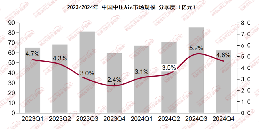 从2024年四个季度来看,中压Ais的市场需求主要集中在三季度,从增长情况方面看,市场呈现持续增长的态势: