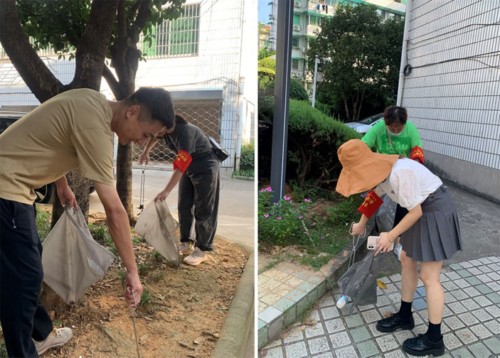 在社区工作人员的带领下,志愿者们按计划分工,迅速进入状态,尽管当日天气炎热,依然没有一丝懈怠,仔细清理小区公共区域的烟头、花坛内动物排泄物等垃圾;认真排查并归整小区内不规范停车现象,帮忙劝导小区内不文明停车行为,同时对小区内牛皮癣、基础设施破损、私拉乱接、飞线等进行排摸,以便社区工作人员后期工作的安排。